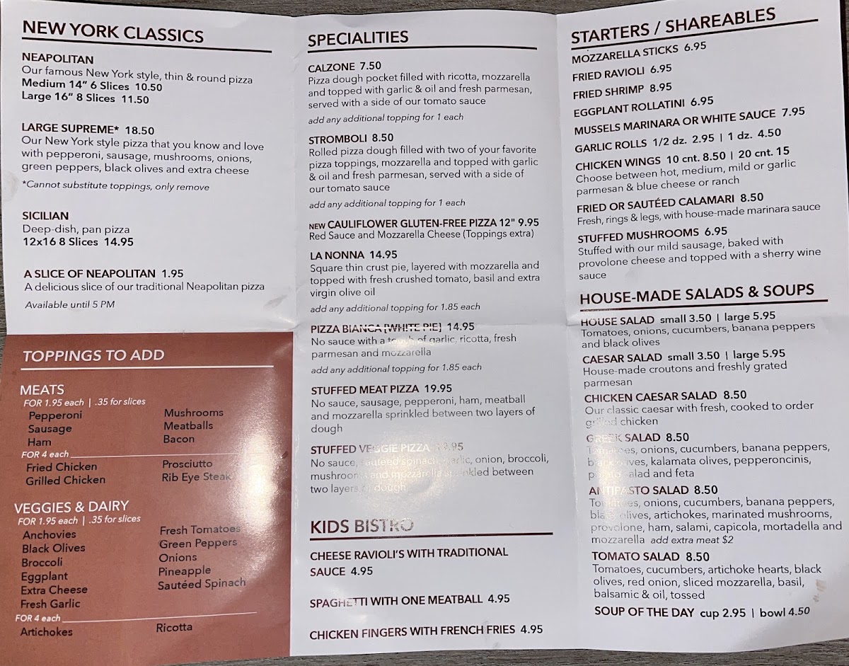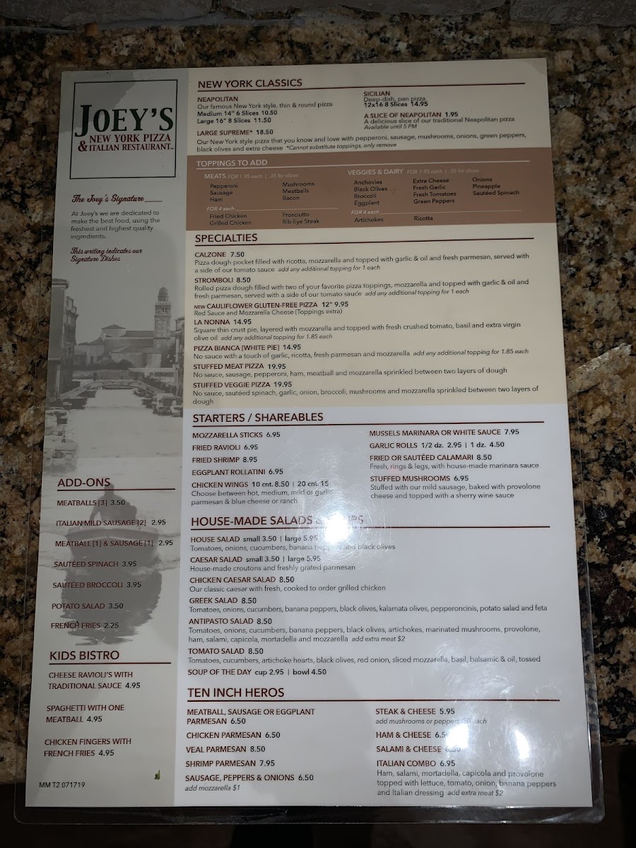 When you step into Joey's New York Pizza & Italian Restaurant, you're in for a treat that feels like home. Located on Seven Springs Blvd in New Port Richey, FL, this cozy spot is all about delivering delicious, comforting dishes that transport you straight to Italy and New York. From perfectly crisp pizza to mouth-watering pasta dishes, every bite is packed with flavor. The Joey's New York Pizza & Italian Restaurant Menu offers a wide variety of authentic Italian favorites, all made with fresh ingredients that will have you coming back for more. Whether you're craving a classic slice of pizza or a hearty bowl of spaghetti, the menu has something to satisfy every taste. With a welcoming atmosphere and a menu full of irresistible choices, Joey's is the perfect place for a casual meal with family and friends.